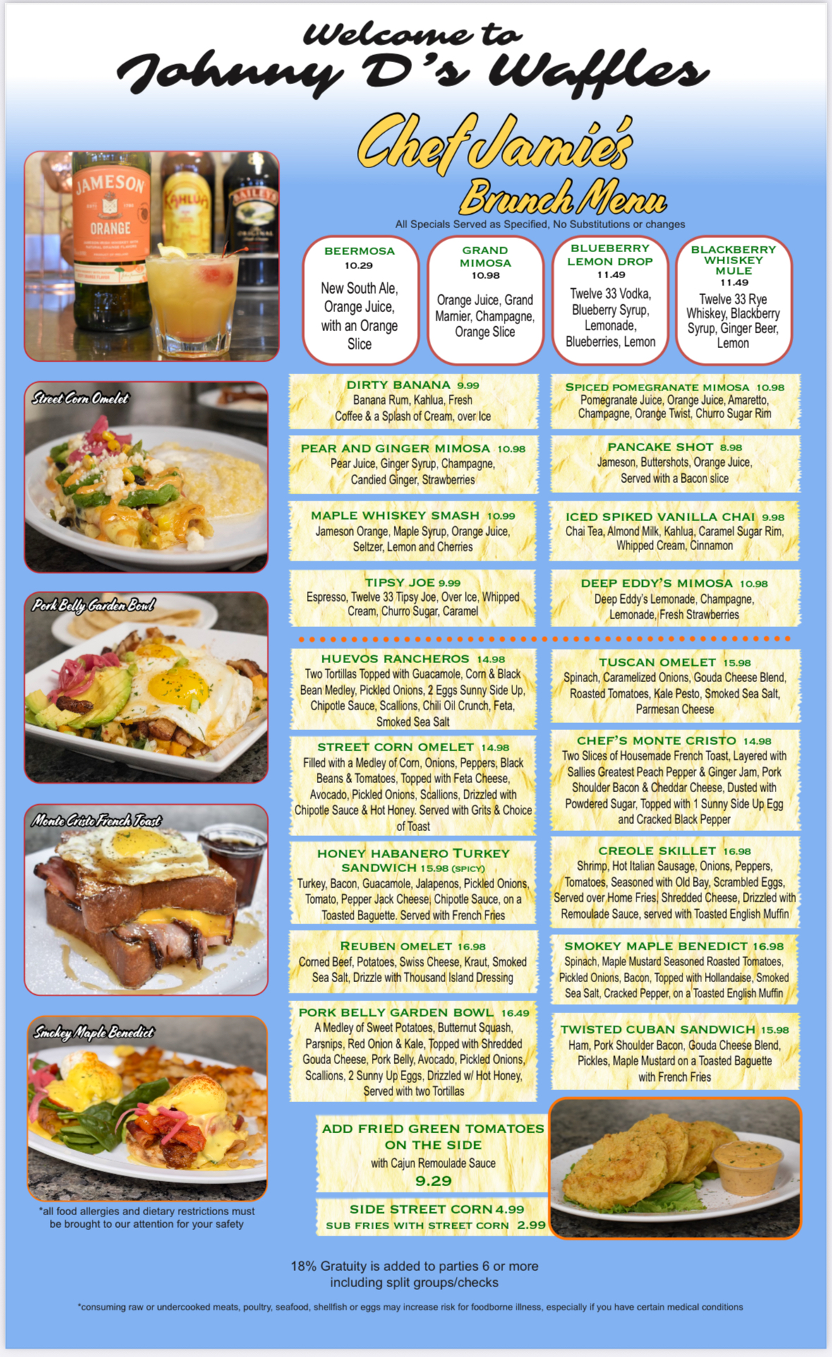 There’s something about fall that makes comfort food and cozy drinks taste even better. At Johnny D’s, we’re excited to roll out our new seasonal specials alongside some of the brunch dishes and cocktails that guests keep coming back for again and again.